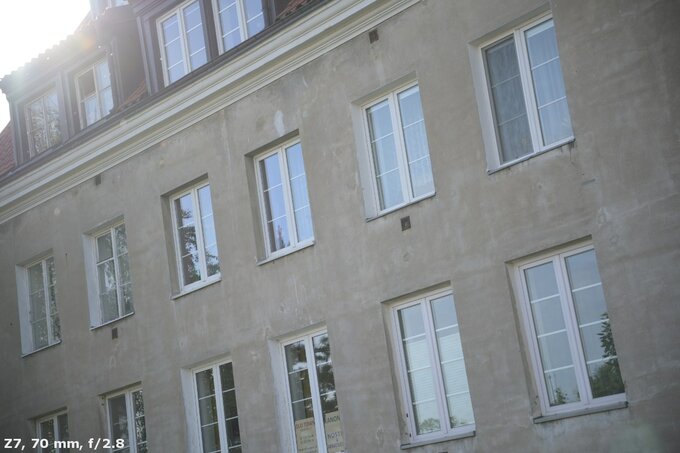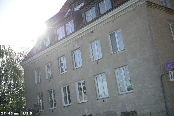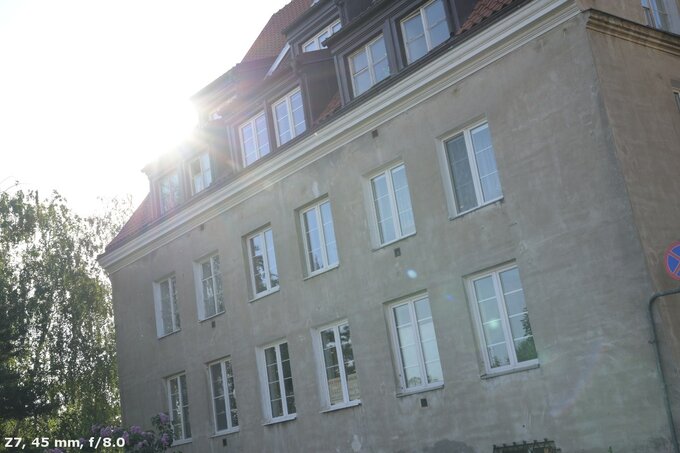 Taking into account complexity of the optical construction of the tested lens (after all you deal here with as many as 15 groups of elements so 30 air-to-glass surfaces where, potentially, you can get unwanted light reflections) and the presence of a huge front element, not sheltered by anything, the task in this category was difficult. Nikon constructors did a good job here and, in our opinion, you can't have any serious reservations.
