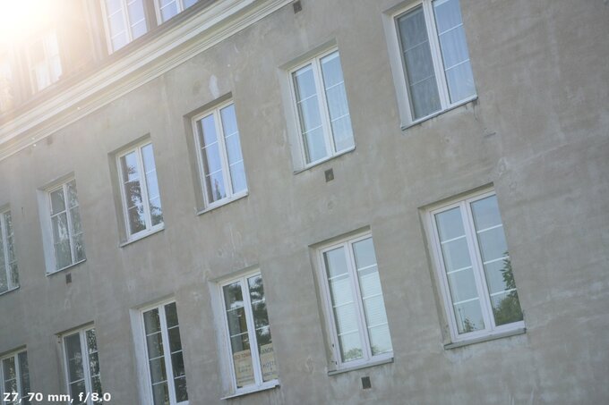 The performance of the Nikkor 24-70 mm f/2.8 S against bright light is good. In some circumstances you can catch light artifacts but they are few and far between, neither especially intense nor big.