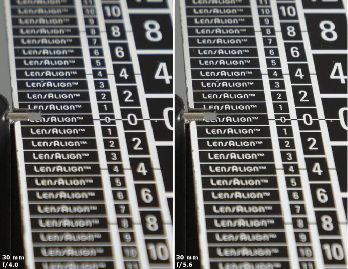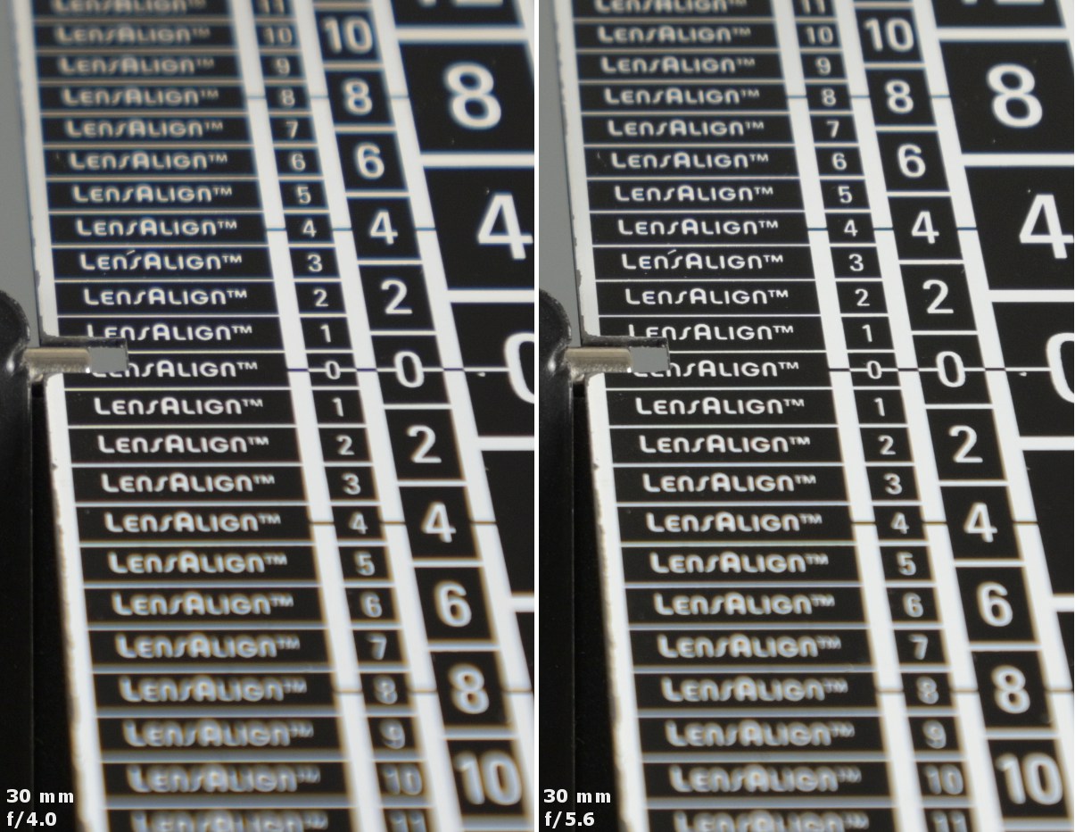 First shots, presented in this chapters, show that depth of field shifts slightly toward greater distances when you stop the lens down from f/4.0 to f/5.6. Of course that effecti is visible only at the maximum focal length and when you take photos from a short distance. In other situations the depth of field is so significant that it would be very difficult to talk about blurry areas and their relative shifts.The appearance of circles at the maximum focal legnth also proves that spherical aberration hasn't been corrected in a perfect way. There are some differences between them, visible especially well in the middle: in one circle, you see a brighter area and in the other circle the same area is visibly darker.