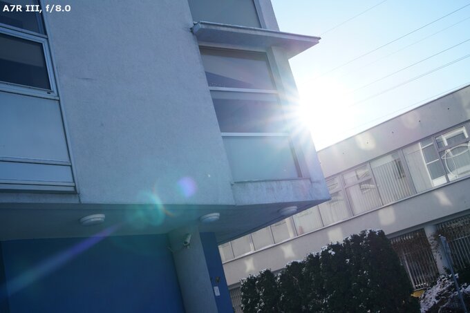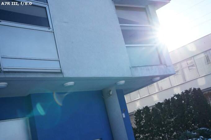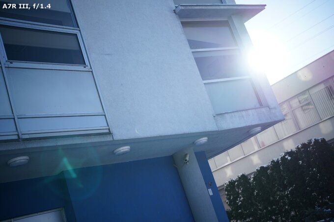 The Sony FE 50 mm f/1.4 GM didn't have it easy when it comes to performance against bright light. It is a fast lens with a relatively big front element put very shallowly inside the barrel. What's more, it features as many as 11 groups of lenses and 22 air-to-glass surfaces where you can catch unwated reflections and ligth artifacts.