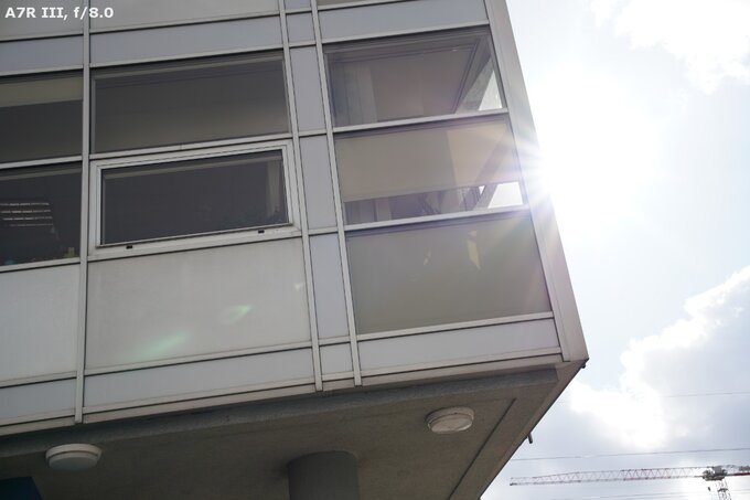 After the vignetting slip-up you get a kind of consolation in a form of very good performance against bright light. The Sigma fares here as it befits a good quality optical instrument. It is really difficult to catch any reflections, they are very sporadic, and even if you do manage to catch them, light artifacts are not especially intensive. What's more, at all combinations of aperture value and sun position images inside the frame are very nicely contrasted.