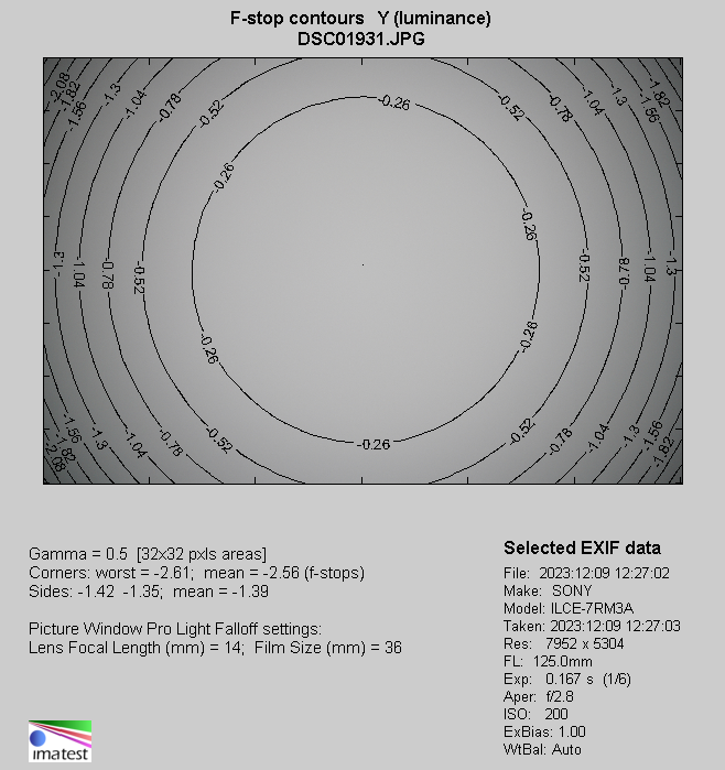 In this category the Tamron performed weaker than the more expensive Sony model which, at the maximum relative aperture, showed vignetting from 42 to 46% and it depended weakly on the focal length you used.