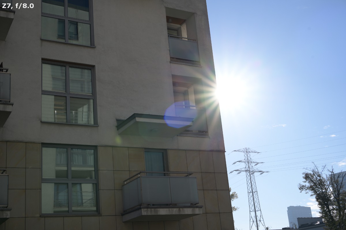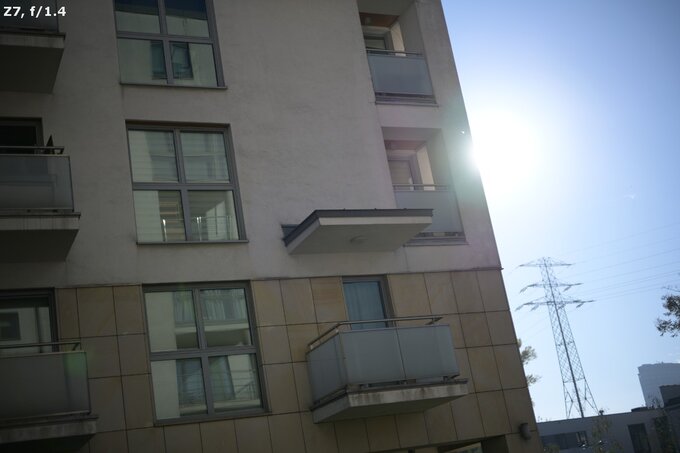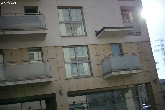 The Nikkor's Z 50 mm f/1.4 performance against bright light is quite sensible. Most of the problems you can observe when the sun is positioned relatively close to the frame centre but with such a kind of equipment such situations are few and far between. When you move the source of bright light towards the frame corner the number and intensity of flares decreases significantly. All problems end practically completely when you move the sun right outside the frame corner.
