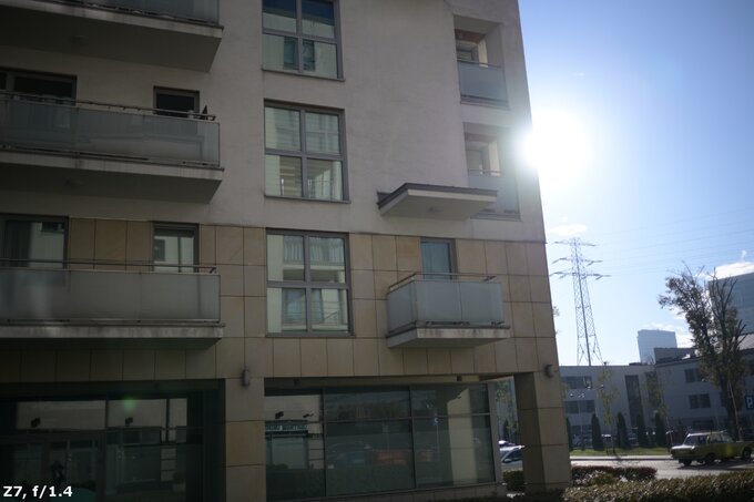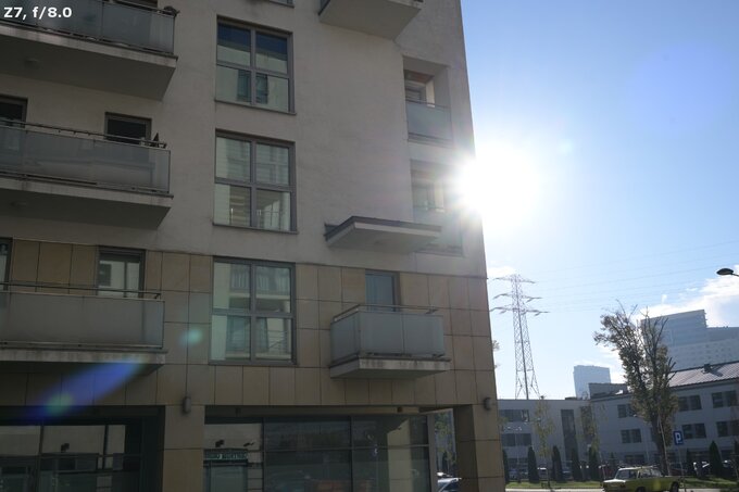 When it comes to the performance against bright light the Nikkor Z 35 mm f/1.4 doesn't provide any serious reasons to complain. Most of problems you can notice when the sun is situated relatively close to the frame centre and such situations with this type of equipent are few and far between. When the source of light is moved toward the frame corner, the number and intensity of flares decrease significantly. All problems end practically completely with moving the sun right outside the frame corner.