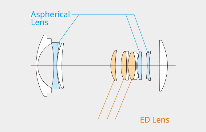 When it comes to optical construction you deal here with 11 elements positioned in 9 groups. Among them you can find three aspherical elements and three made of low dispersion ED glass. Inside the lens there is also a round aperture with nine blades that can be closed down to a value of f/22 at the maximum.