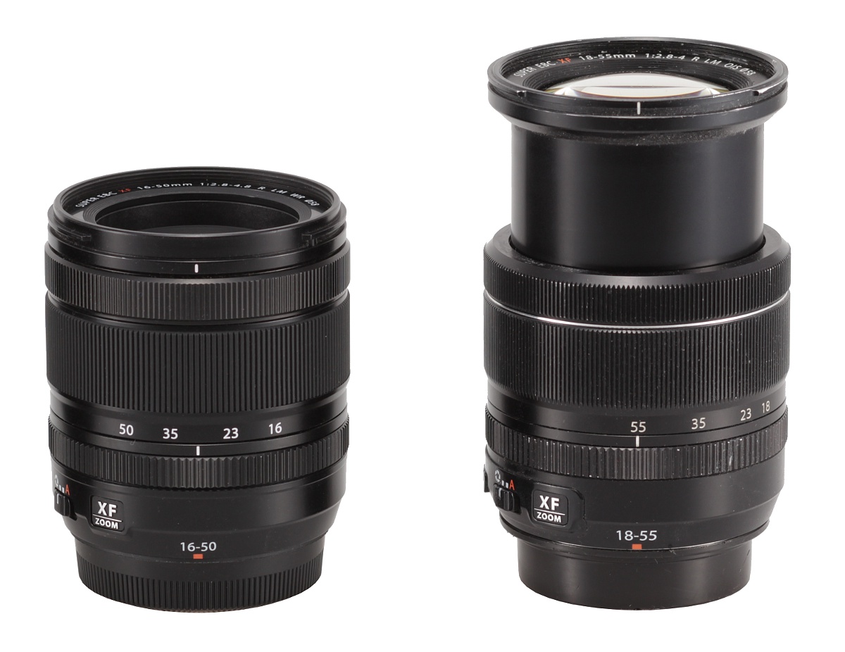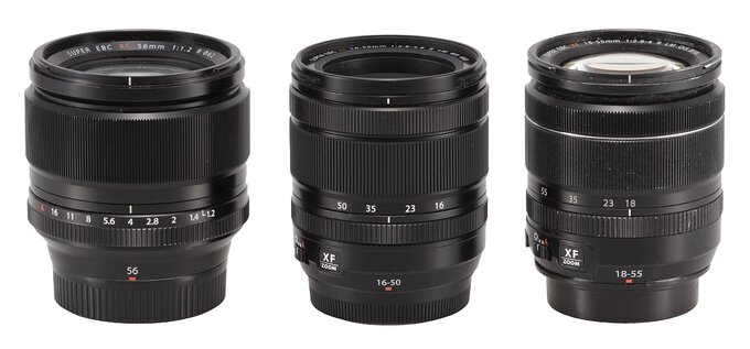 In the photo below the Fujinon XF 16-50 mm f/2.8-4.8 R LM WR is positioned between the fixed focal Fujinon XF 56 mm f/1.2 R, and its 18-55 mm f/2.8-4.0 predecessor.