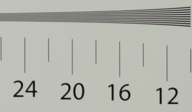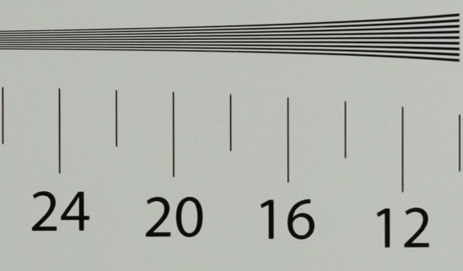 Traditionally, we end this chapter by presenting crops taken from photos of our resolution testing chart which were saved in JPEG format along RAW files, used for the analysis above.