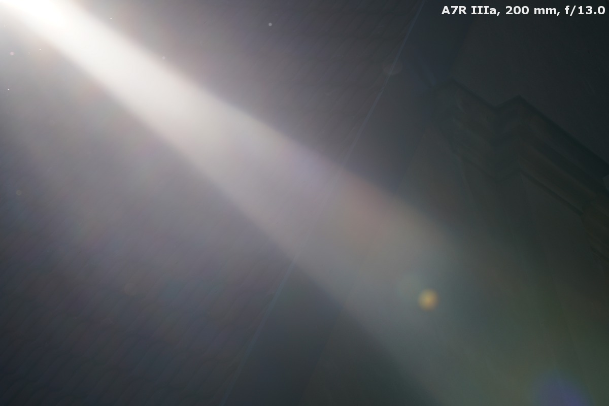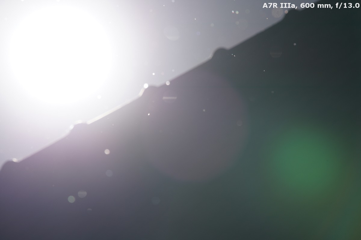 Ensuring good performance against bright light in case of such a lens as the Sony 200-600 mm is very difficult indeed as everything acts against the efforts of the constructors. You deal here with a lens that features a big front element that is positioned rather shallowly inside the barrel; this lens is also a closed construction as all optical elements move inside. This fact seriously limits the possibility of proper blackening, and positioning apertures and ribs inside. As if it wasn't difficult enough, the optical construction is complex, consisting of as many as 17 groups of elements. It means as many as 34 air-to-glass surfaces.