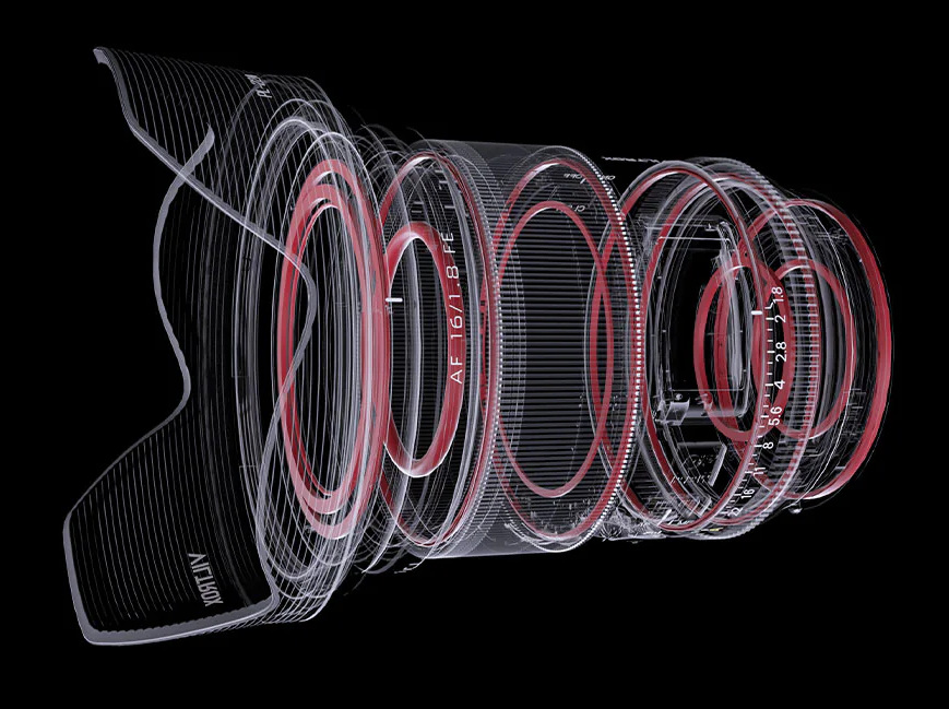 In the following photo the Viltrox AF 16 mm f/1.8 is positioned between the Voigtlander Apo-Lanthar 2/50 and the rival Sony FE 16 mm f/1.8 G. The physical dimensions of the Viltrox and the Sony differ significantly but you have to add that the Sony is exceptionally small for this class of equipment. The dimensions of the Viltrox are exactly what you should expect from a lens with such an angle of view and aperture, providing you also a possibility to attach normal filters. They shouldn't surprise anyone.