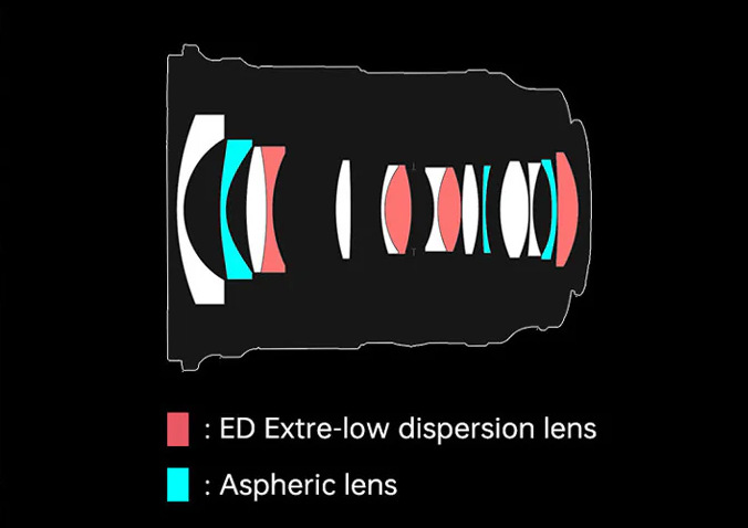 Buyers get in the box with the lens: both caps, a hood, and a soft pouch which protective properties are a matter of discussion.