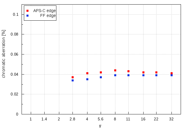 Let's check now the correction of lateral chromatic aberration with the help of a graph below.