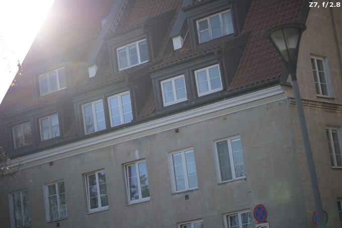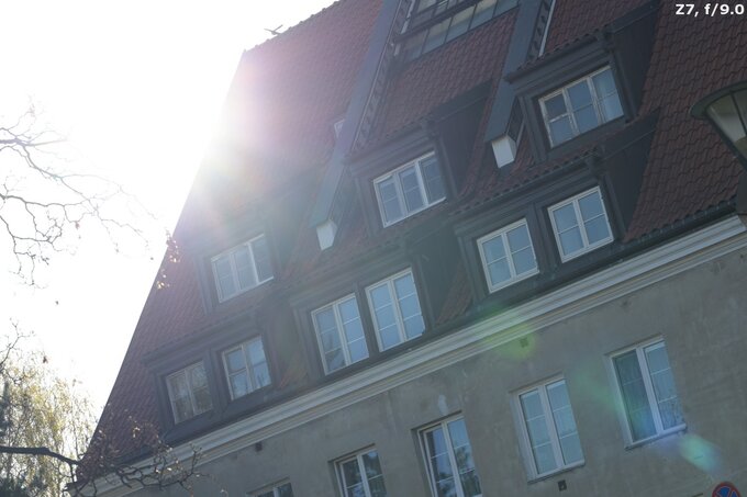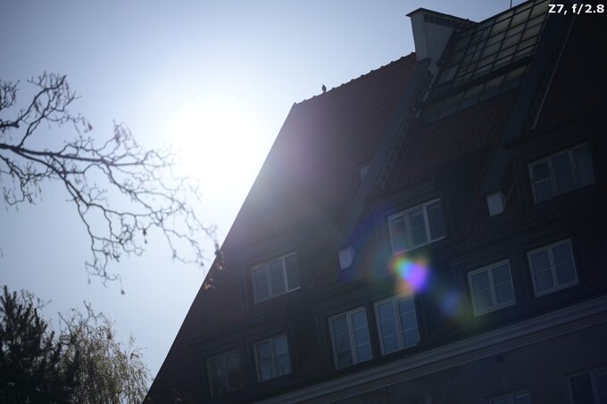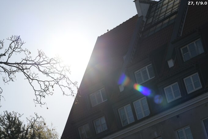 Small wonder the Nikkor's performance is mediocre at most. There is no tragedy but when the sun is inside the frame or right outside its edge you can catch very bright artifacts that might destroy your shot completely.