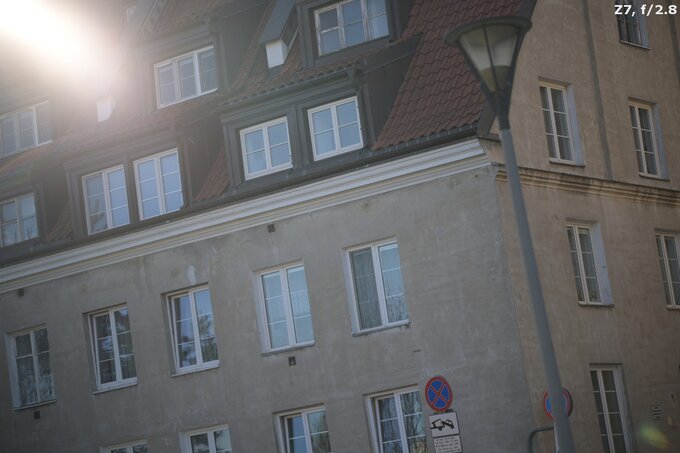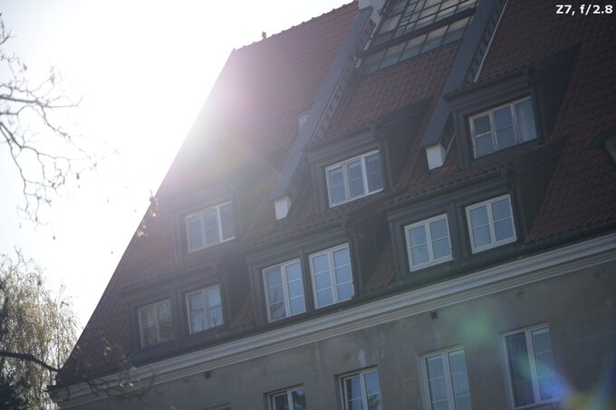 When it comes to the performance against bright light the task was relatively difficult. You deal with a front element that is not shielded by any protruding part of the casing, a completely internal focus setting system that demands a lot of space inside the lens and limits the possibility of using internal apertures and a lot of ribbing, many movable elements, connected to the autofocus and stabilization mechanisms, and 22 air-to-glass surfaces where you can catch unwanted reflections.