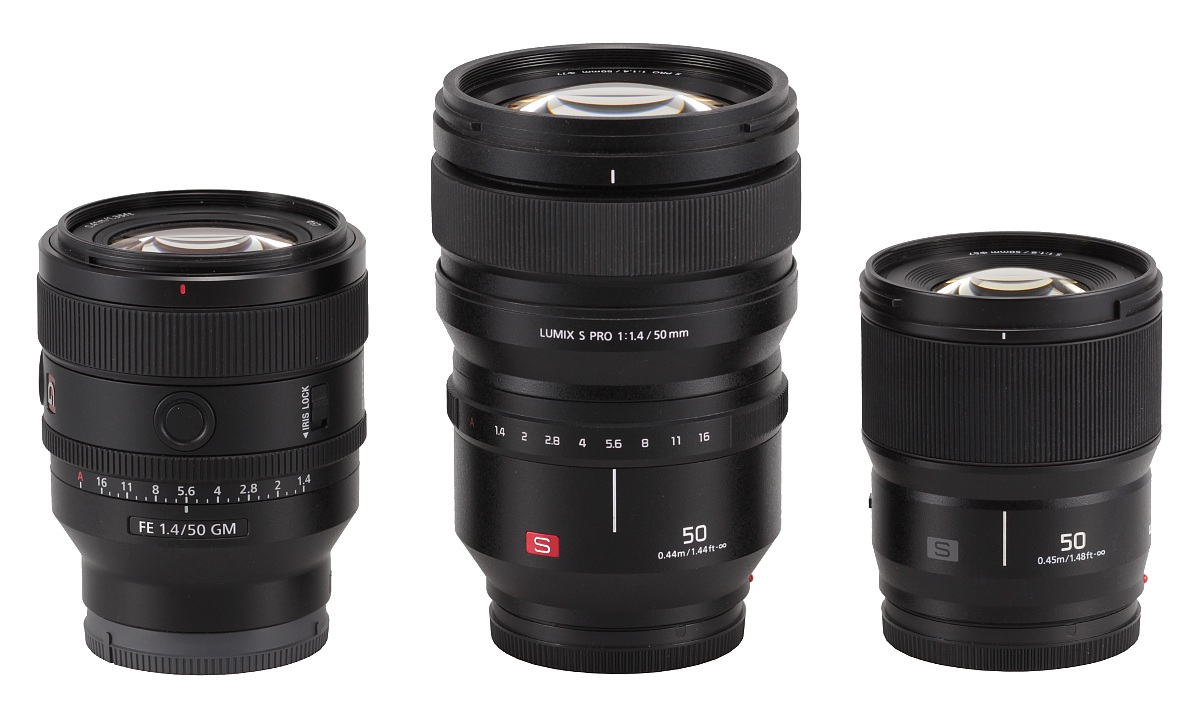 When you look at the photo below you can see that the Panasonic Lumix S Pro 50 mm f/1.4 is really big. On its left side there is the Sony FE 50 mm f/1.4 GM. On the right we put the Panasonic S 50 mm f/1.8 model, something for L-mount users that are also fans of smaller physical dimensions.