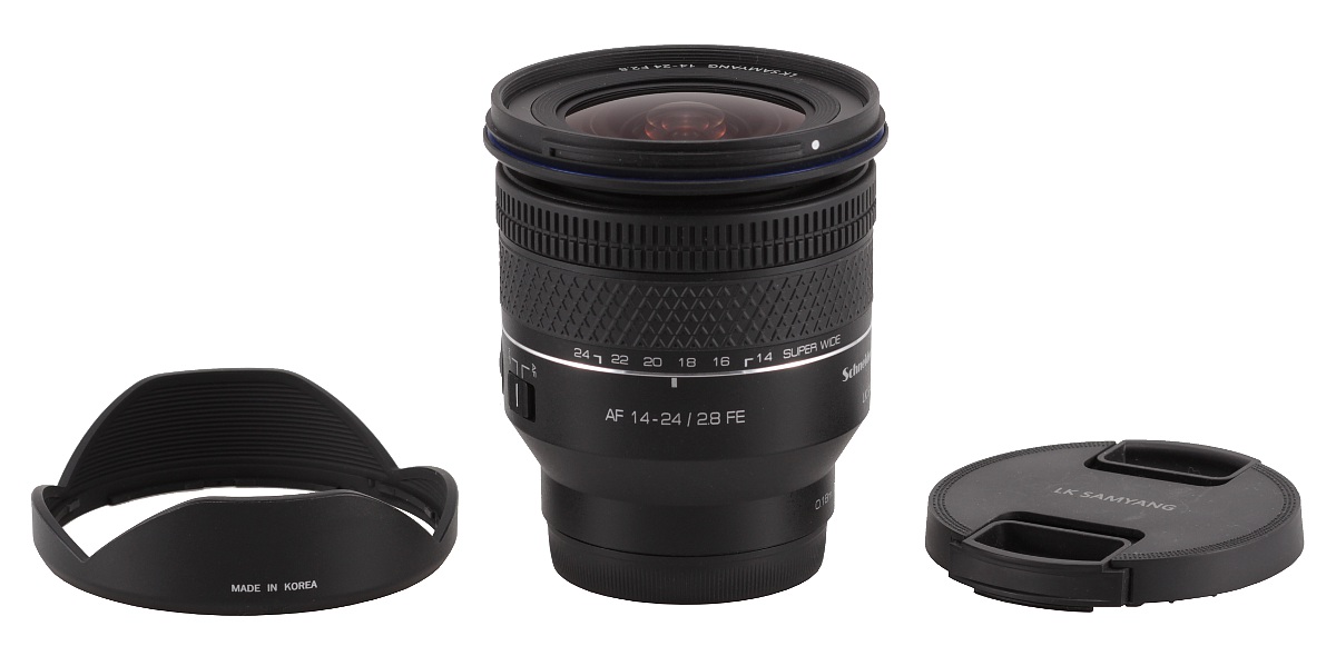 The following chart presents a comparison between basic parameters of different 14-24 mm f/2.8 lenses designed for full frame mirrorless cameras. As you can notice the new Samyang is a real midget in this group, weighing almost two times less than the heaviest models of this type. At the same time it offers you a possibility to use normal front 77 mm filters. Previously only the Nikkor offered you that but in its case you had to buy filters of really monstrous diameter, that of 112 mm. The shortest minimum focusing distance, amounting to just 18 cm, is an additional asset of the Samyang.