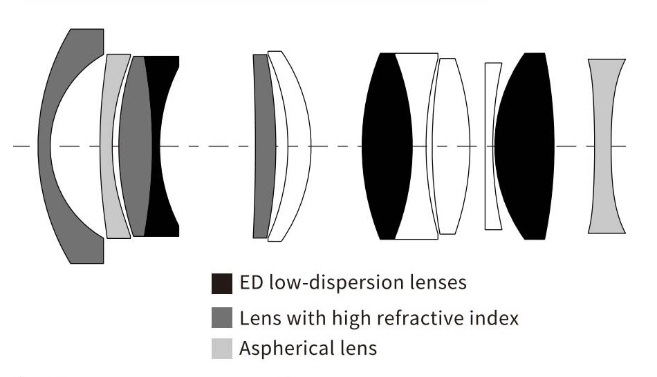 When it comes to optical construction, you deal here with 12 elements positioned in 10 groups. Among them you can find as many as three ED elements, two aspherical elements, and three made of high refractive index glass (HR). As you see the producers weren't skimpy when it comes to special elements, a fact worth emphasizing especially that the price of this model is very reasonable. Inside you can also find a round aperture with nine blades that can be closed down to a value of f/16 at the maximum.