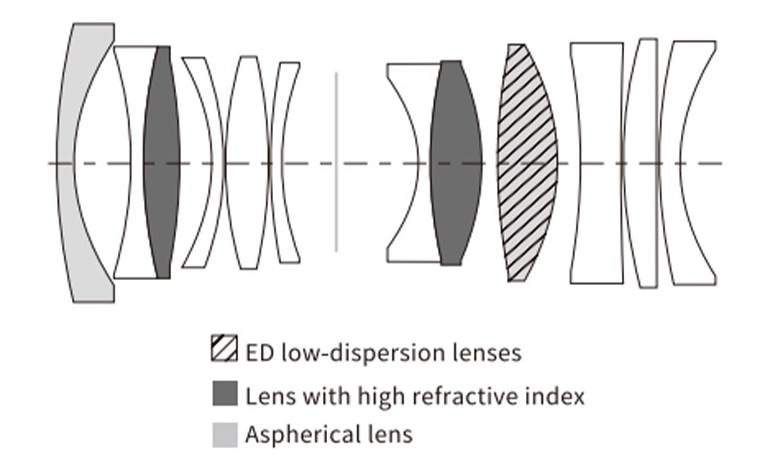 When it comes to optical construction, you deal here with 12 elements positioned in 10 groups. Among them you can find one ED element that is also aspherical in shape, one more aspherical element, this time made of ordinary glass, and two elements made of high refractive index glass (HR). As you see the producers weren't skimpy when it comes to special elements, a fact worth emphasizing especially that the price of this model is very reasonable. Inside you can also find a round aperture with nine blades that can be closed down to a value of f/16 at the maximum.