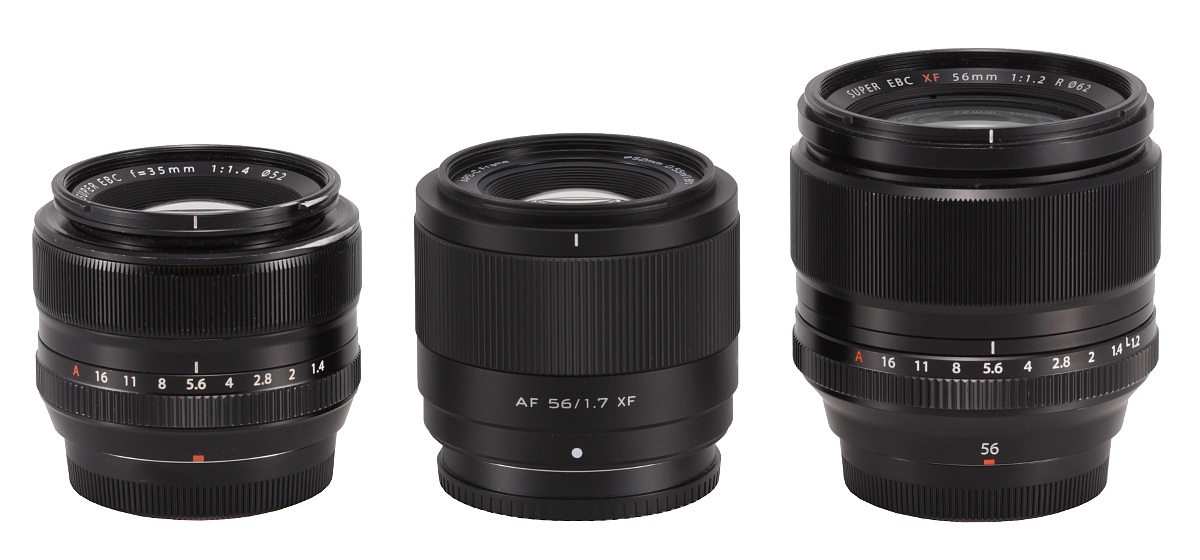 In the photo below we positioned it between two Fujinons, the XF 35 mm f/1.4 R, and the XF 56 mm f/1.2 R.
