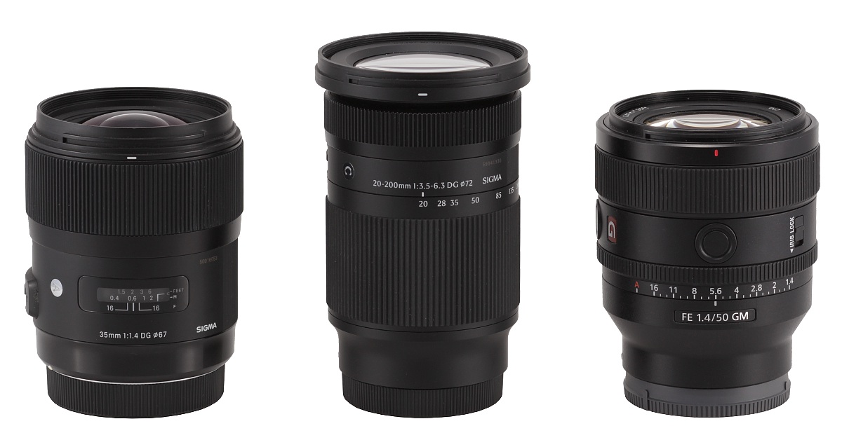 In the photo below the Sigma C 20-200 mm f/3.5-6.3 DG is positioned between the reflex camera Sigma A 35 mm f/1.4 DG HSM and the Sony FE 50 mm f/1.4 G.