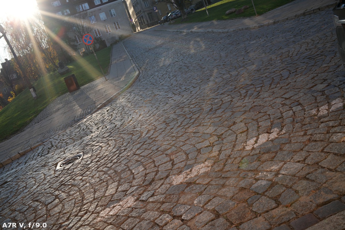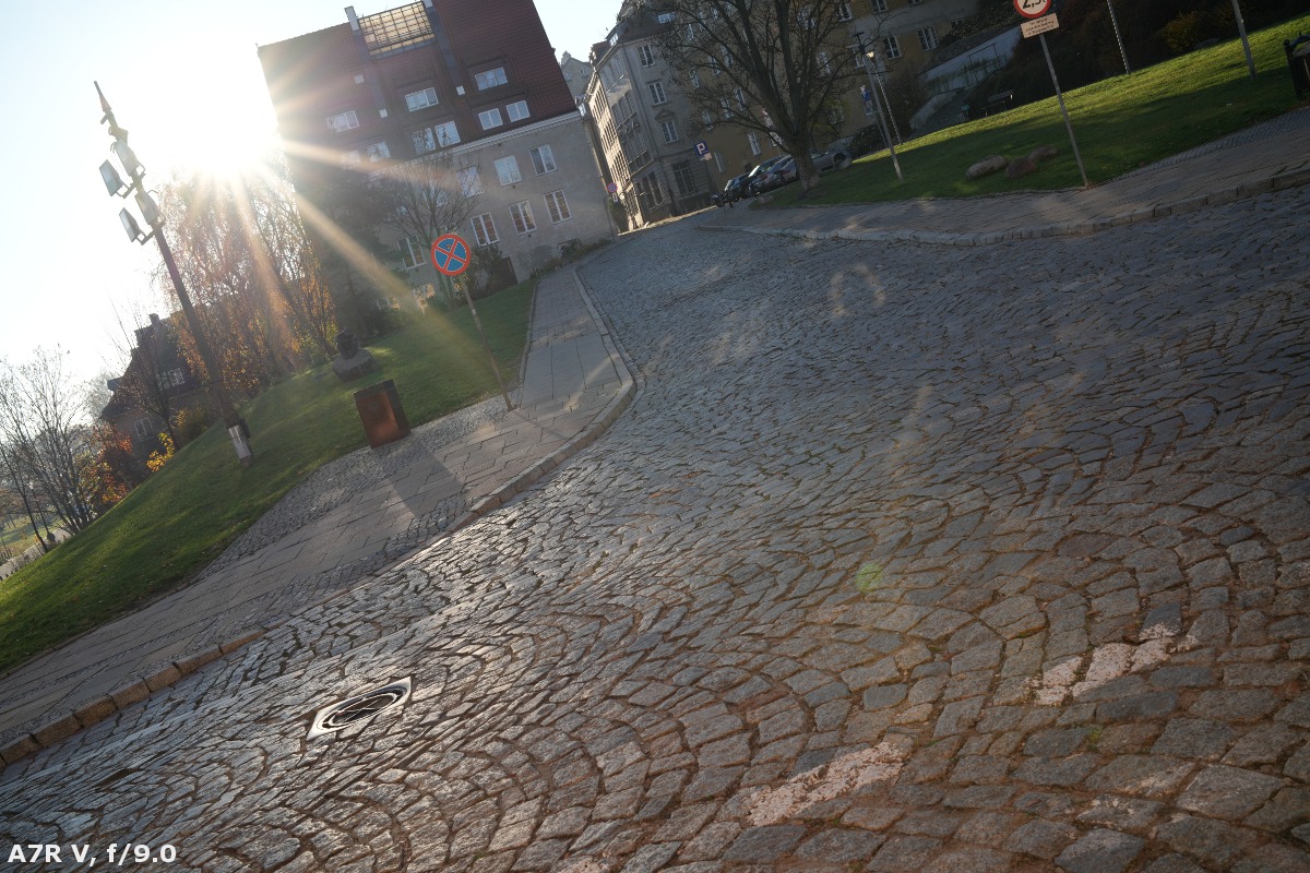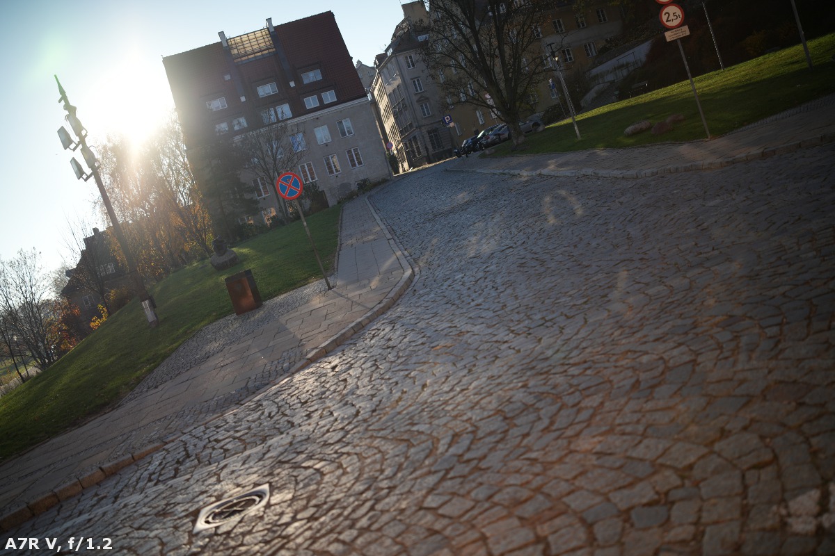 It is precisely the case of the AF 35 mm f/1.2 LAB model. You can't have any serious reservations when it comes to its performance against bright light. At the maximum relative aperture, the situation is, overall, good, with few light artifacts. Even on more significant stopping down, the performance remains decent, and flares aren't so bothersome. There are two exceptions to this rule. Firstly, when the sun is situated close to the frame, you can catch three brighter rays of light that might be a tad annoying. Secondly, even if you move the sun far away from the frame in the opposite corner you can notice a small, reddish discolouration.