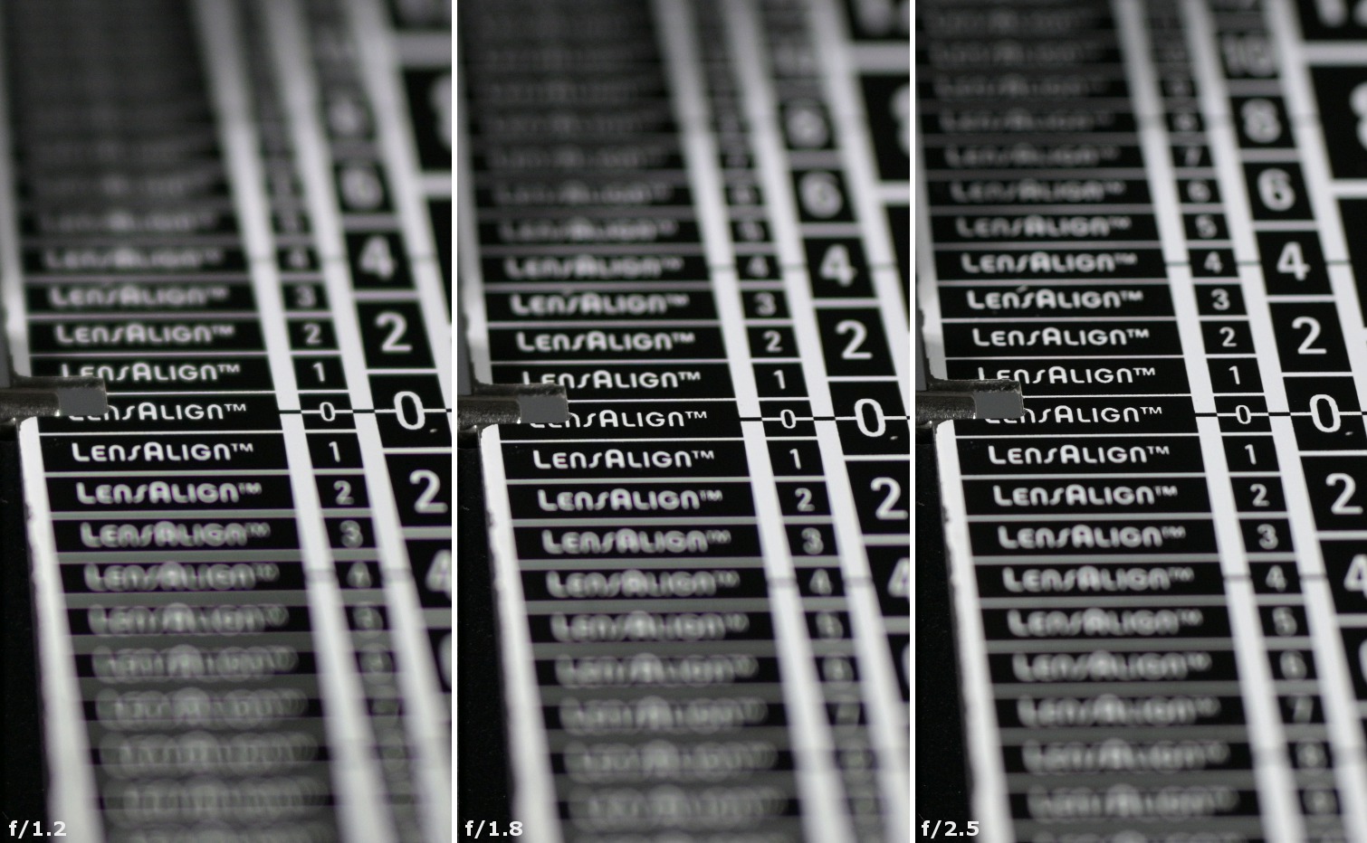 First photos of this chapter don't feature any focus shift effect between f/1.2 and f/1.8 but some shift toward greater distances can be noticed after stopping down by another 1 EV.A slight influence of spherical aberration is visible when it comes to defocued circles of light we got before and behind the focus. The first of these circles features a slight, gradual brightness loss when you move towards the edges of the frame and the second circle is devoid of this effect.Fortunately,y there is no distinct, bright rim.