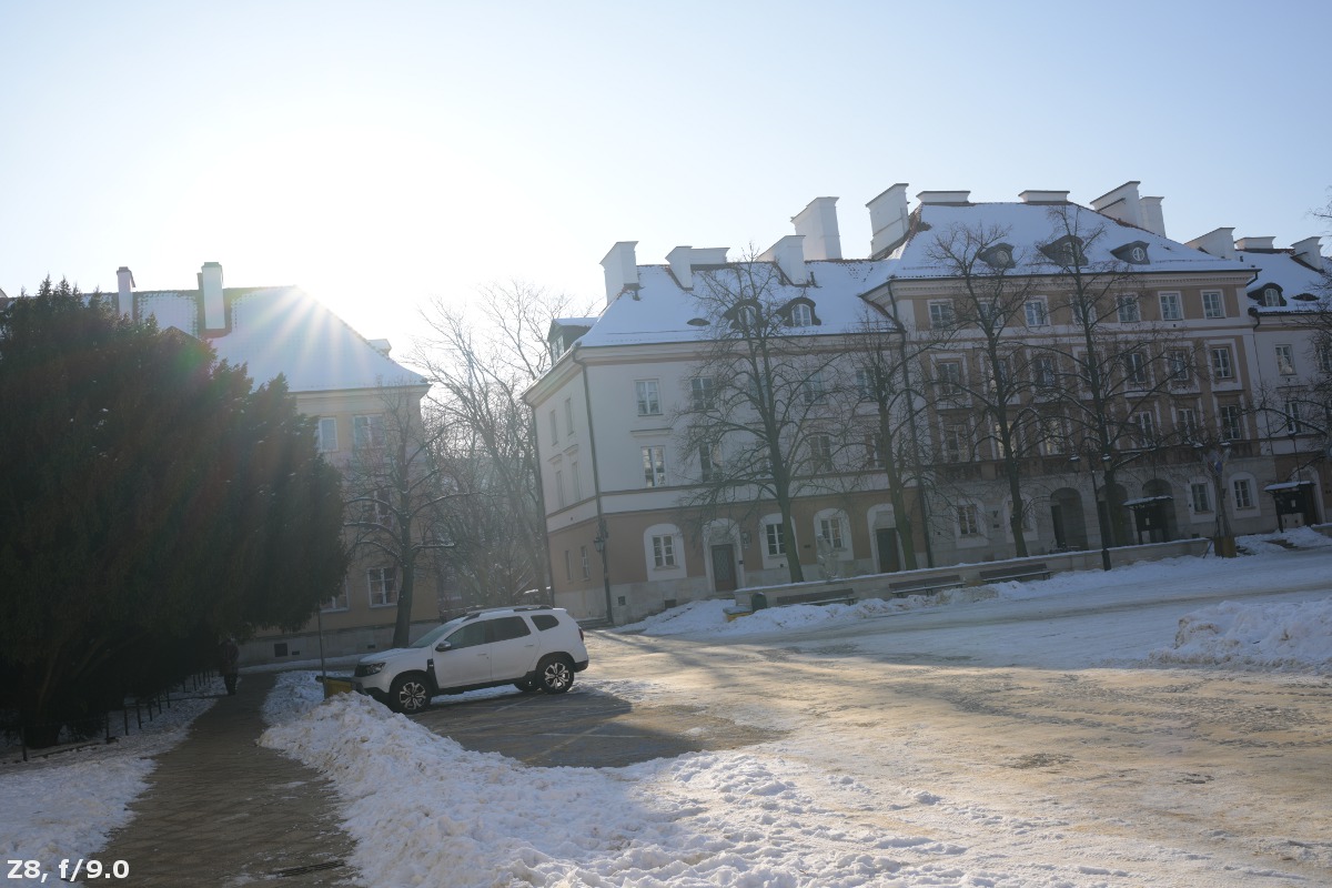 When it comes to the performance against bright light, the bar is set incredibly high. First, you deal with a quite significant angle of view. Second, the lens offers you an excellent aperture fastness, that of f/1.2 and it forces adding a big front element that can't be positioned too deep inside the barrel. Third, you get as many as 15 groups of elements, as many as 30 air-to-glass surfaces where you can catch unwanted reflections of light. Fourth, the lens is a closed construction, so focusing is done by the movements of inner elements. It limits the number of places where you can put ribs and baffles.