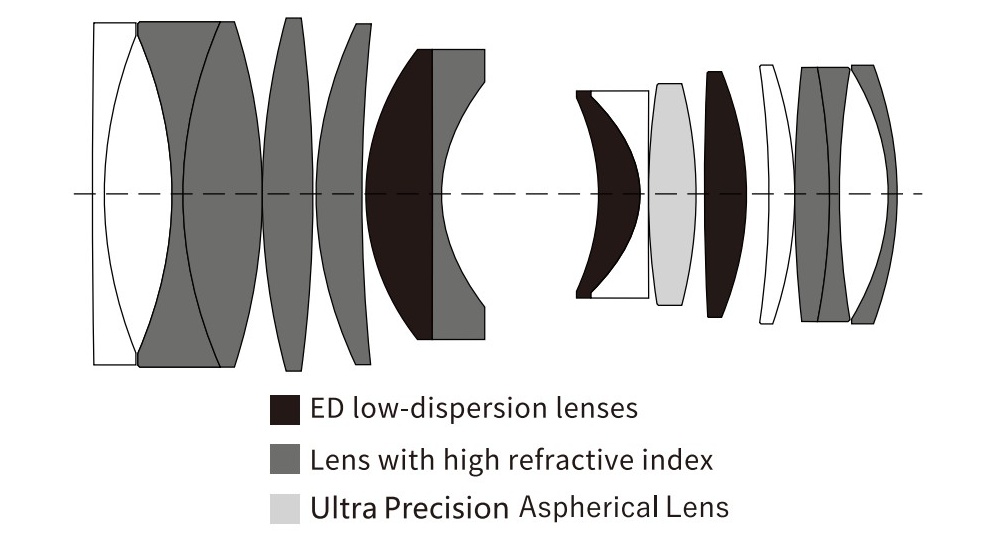 When it comes to optical construction, you deal here with 15 elements positioned in 11 groups. The producers weren't skimpy when it comes to special elements: inside you can find one aspherical element, three made of low dispersion ED glass, and as many as eight elements made of high refraction index glass. Along with all these elements, there is also a round aperture with 11 diaphragm blades that can be closed to a value of f/16 at the maximum.